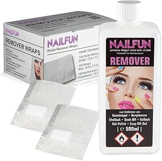 100 Polish Remover Wraps Pads + 500ml REMOVER für Gellack, Shellack, Soak-Off, Gel-Polish, Easy-Off-Gel, Acrylmasse und Tips