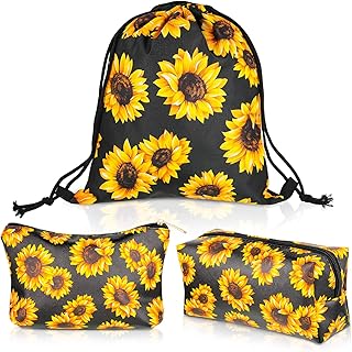 3 Stücke Sonnenblume Kordelzug Rucksack, Sonnenblume Makeup Tasche 3D Druck Sonnenblume Reise Kosmetik Etui Tragbare Multifunktionale Wasserdichte Fitness Organisator Tasche für Männer und Frauen