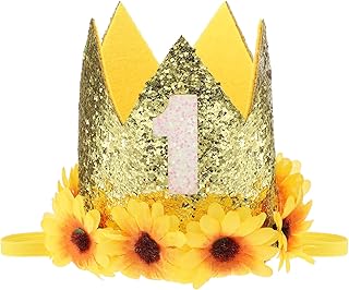 Chuangdi Sonnenblume Geburtstag Krone Geburtstag Sonnenblume Prinzessin Tiara Krone Sonnenblume Stirnband Hut für Baby Geburtstag Party Dekoration