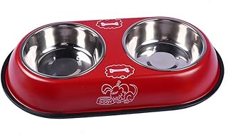 UEETEK Dual Edelstahl Hund Schüssel Pet Wasserfutter Feeder Schüssel Hundefutter Schüssel Pet Schüssel Größe Kleine (rot)