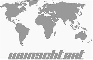 Samunshi® Weltkarte mit Wunschtext Aufkleber in 4 Größen und 25 Farben (30x20cm grau)