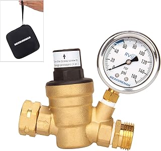 Measureman Verstellbarer Messing-Druckregler, bleifrei, Druckminderer mit Flüssigkeitsgefülltem Manometer, 160 psi und Abschirmfilter für Wohnmobil, Wohnmobil, Wohnmobil, Reiseanhänger