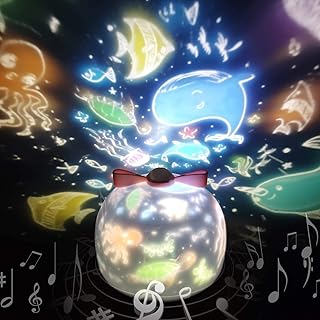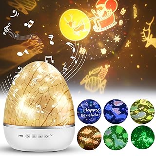 Sternenhimmel Projektor, Kinder LED Musik Nachtlicht Baby Sterne Lampe mit 6 Projektionsfilmen 360 ° Drehbar für Geburtstage, Weihnachtsgeschenke, Kinderzimmer Dekoration